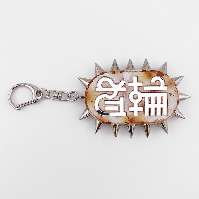「首輪」の文字がデザインされたイカついキーホルダー。 古い軽トラをイメージした塗装にしてます。 ※アクセサリー用のスタッズを使用いていますが、ケガには十分ご注意ください。